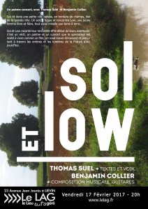 Un poème concert, avec Thomas Suel (voix) et Benjamin Collier (musique).